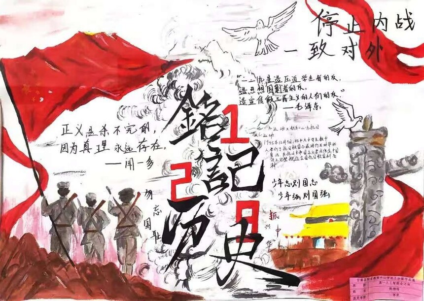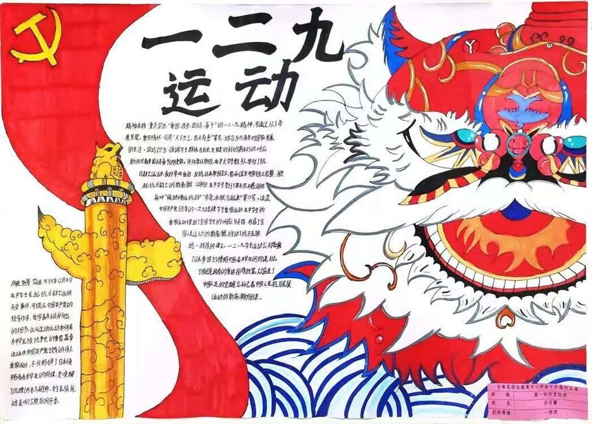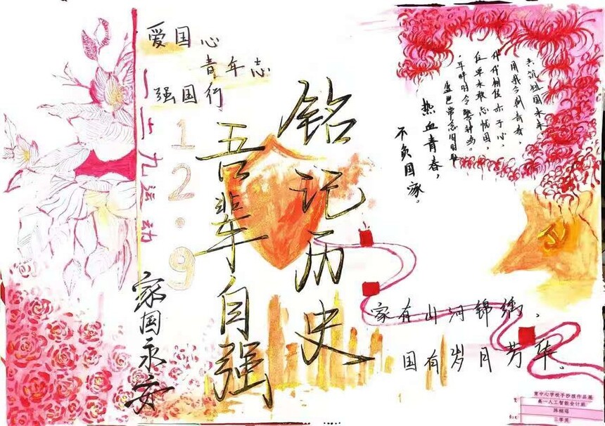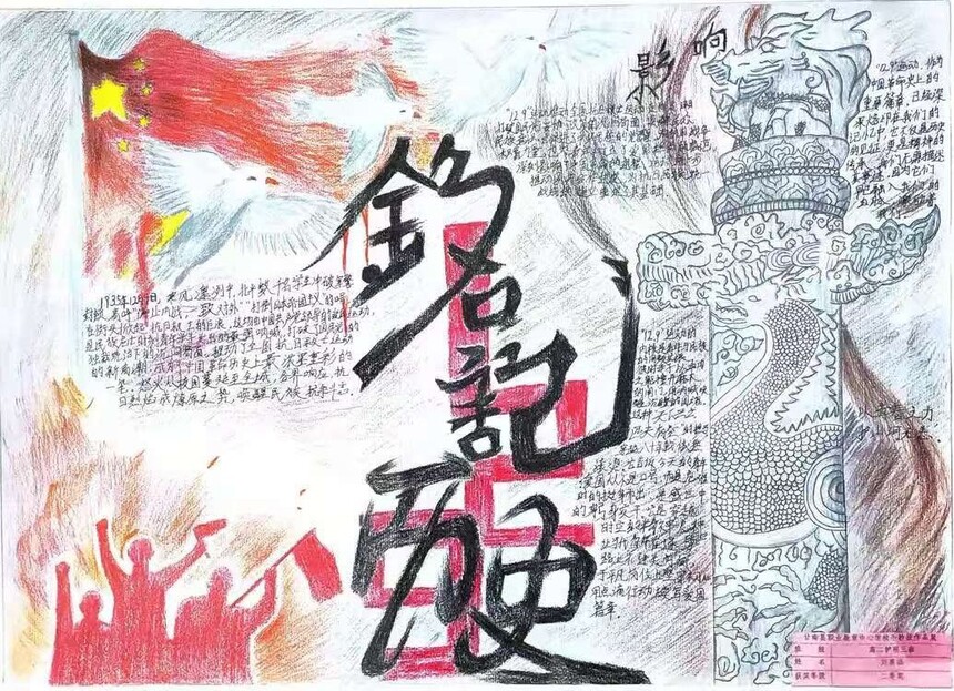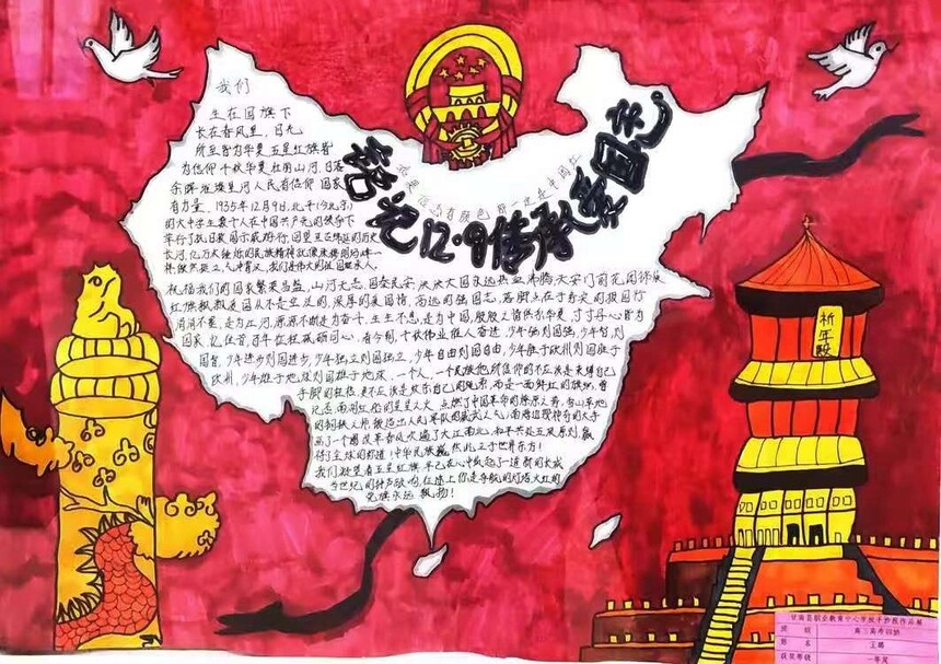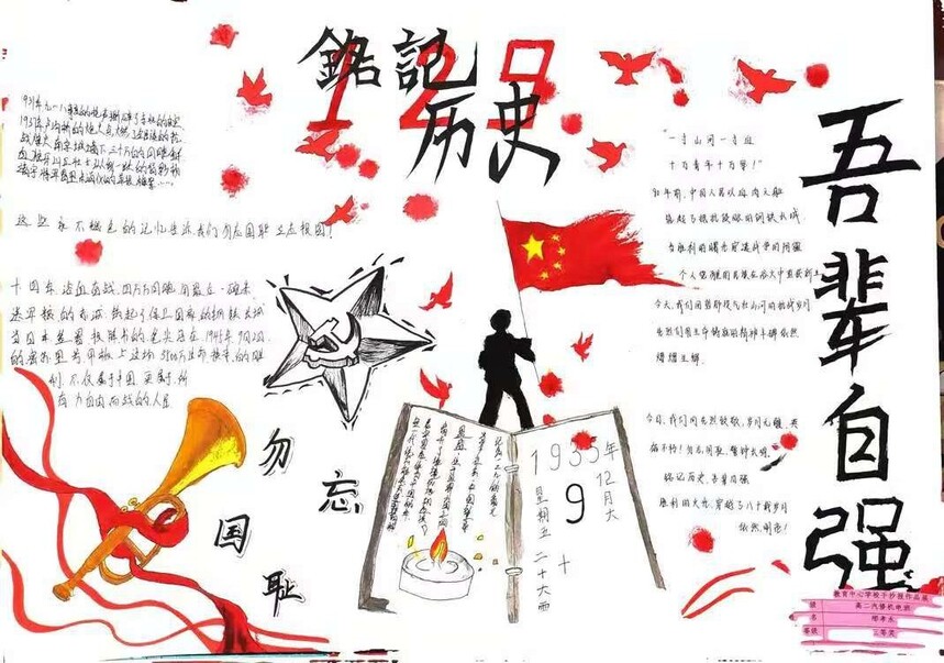 为缅怀 “一二・九” 抗日爱国运动光辉历史,弘扬爱国主义精神,引导学生树立正确历史观与民族观,激发爱国热情和时代责任感,甘南县职业教育中心学校学工处11月3至11月13日启动主题手抄报创作评比活动,面向全体在校学生征集作品。 经过评委组严格评审,最终评选出一等奖 8 名、二等奖 15 名、三等奖 16 名。获奖作品中,同学们以鲜明色彩、生动笔触再现 “一二・九” 运动的热血场景,或抒发爱国豪情,或诠释青年担当,充分展现了职教学子的历史使命感与青春风采。 获奖班级详情已附于上传图片中,望获奖同学珍惜荣誉、再接再厉,未获奖同学汲取经验、奋勇争先。此次活动不仅丰富了校园文化生活,更让红色基因融入青春血脉,激励全校师生铭记历史、砥砺前行,以昂扬姿态书写新时代青年的责任与担当。