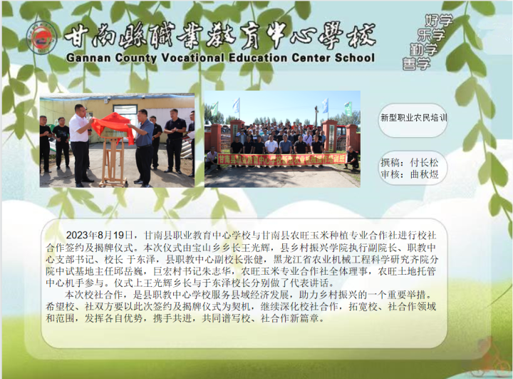 自全县开展精准扶贫工作以来,甘南职教中心学校一直严格按照上级部门政策要求,积极强化帮扶意识,拓宽帮扶