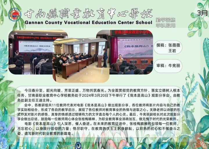 春风化雨,润物无声。伴随着绵绵细雨,清明假期悄然而至。在假期来临前夕,甘南县职业教育中心学校仍在如火